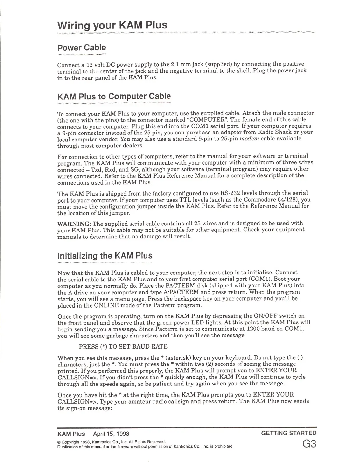 program. The KAM Plus will communicate with your computer with a minimum of three wires
