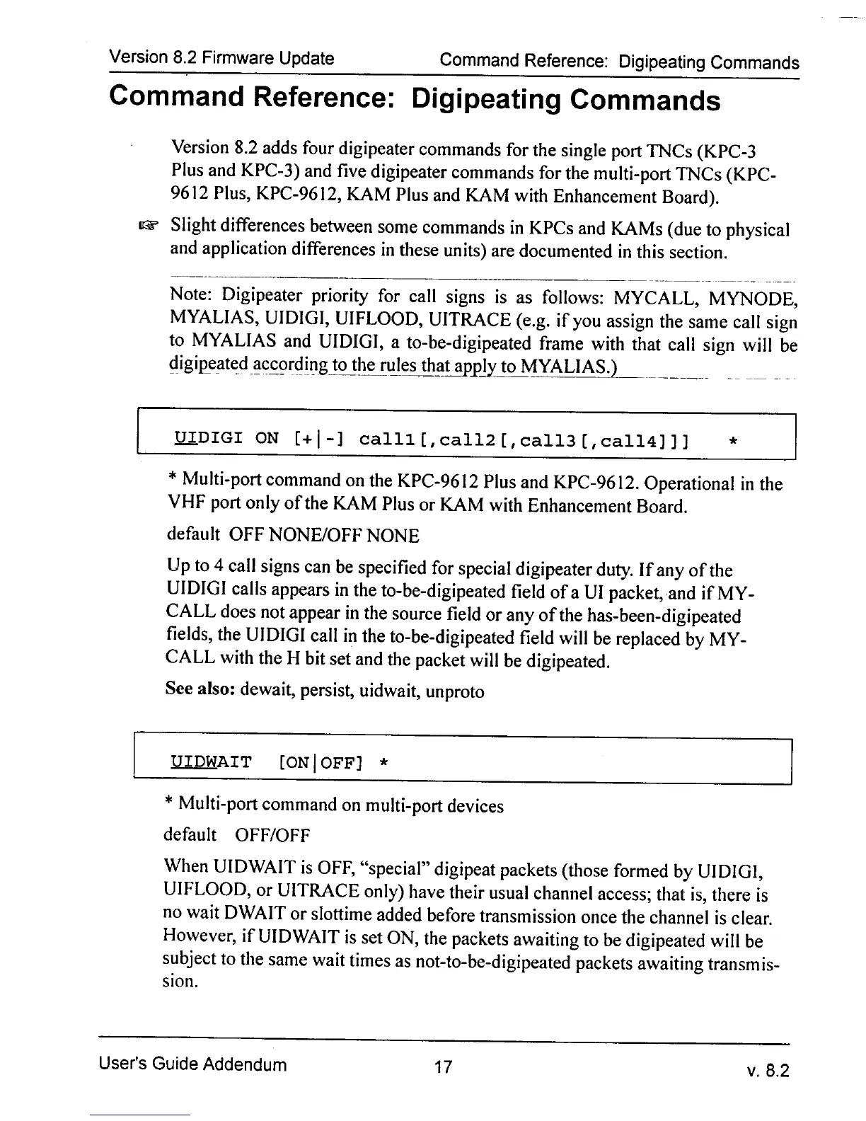 Kantronics KAM Plus - Command Reference: Digipeating Commands