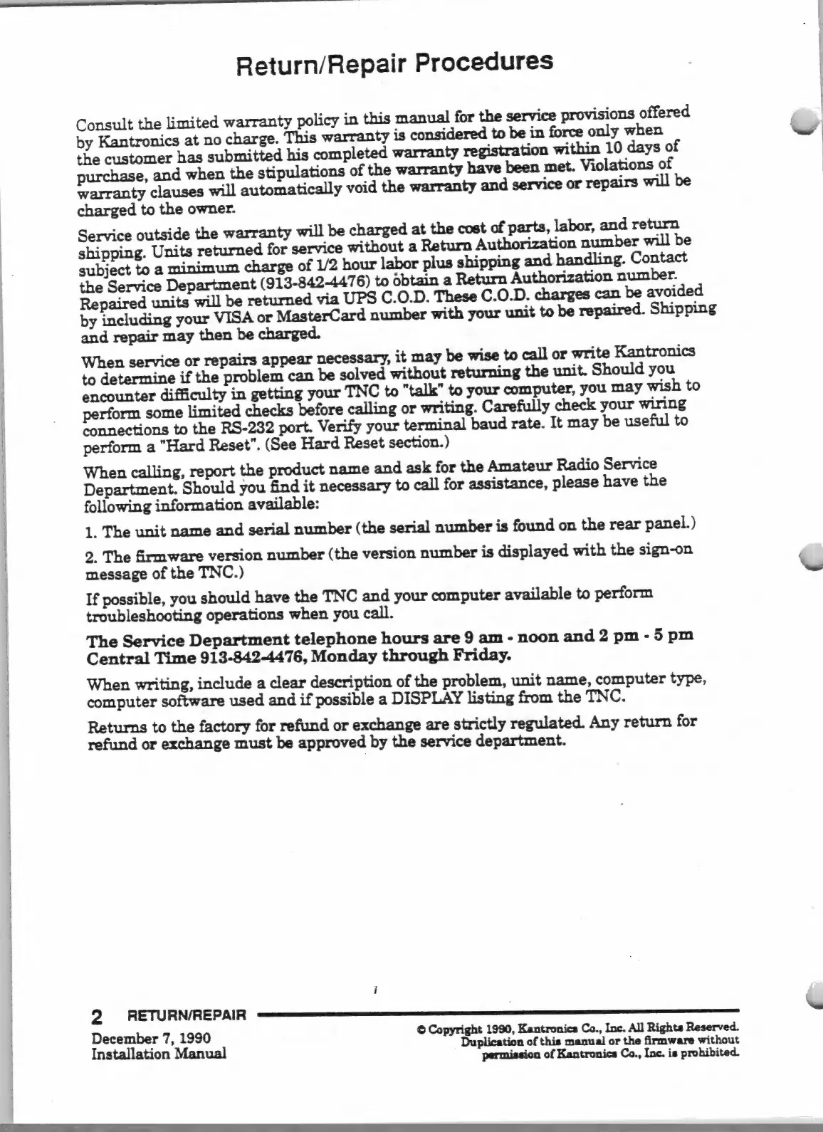 Return/Repair