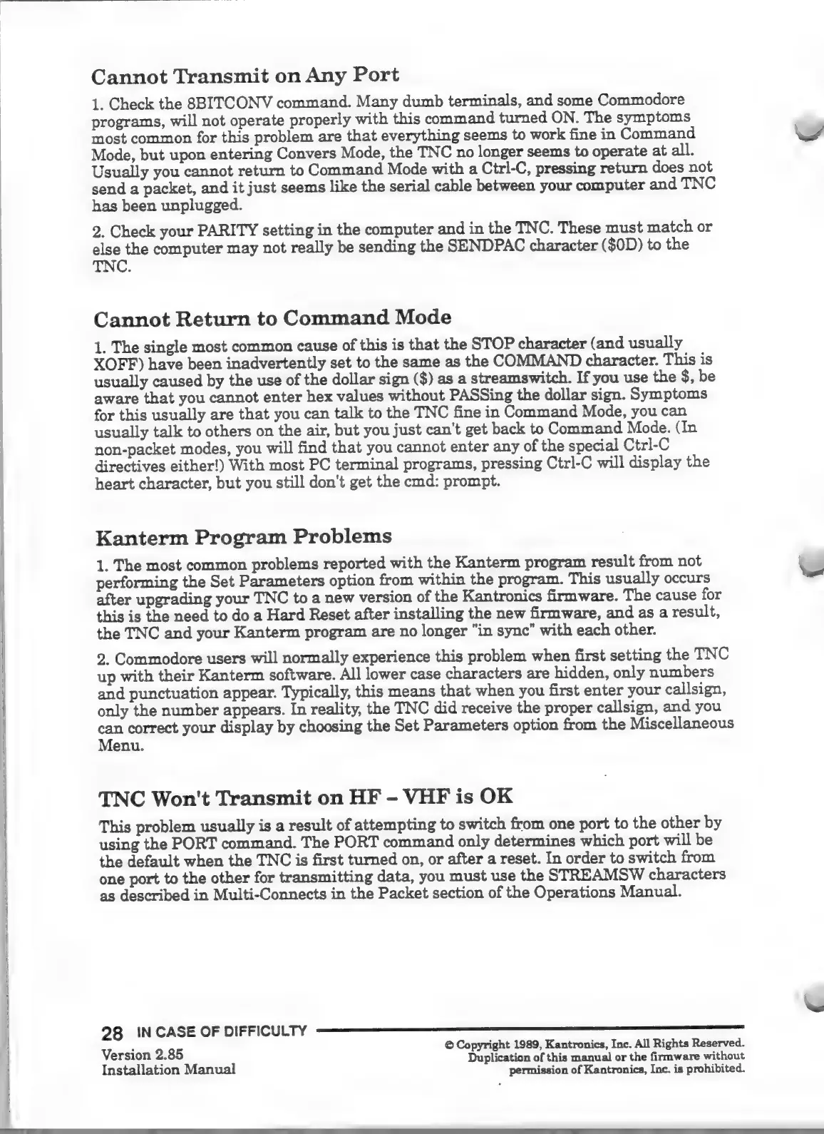 Kantronics KPC-2 - Dumb Modem Mode Operation