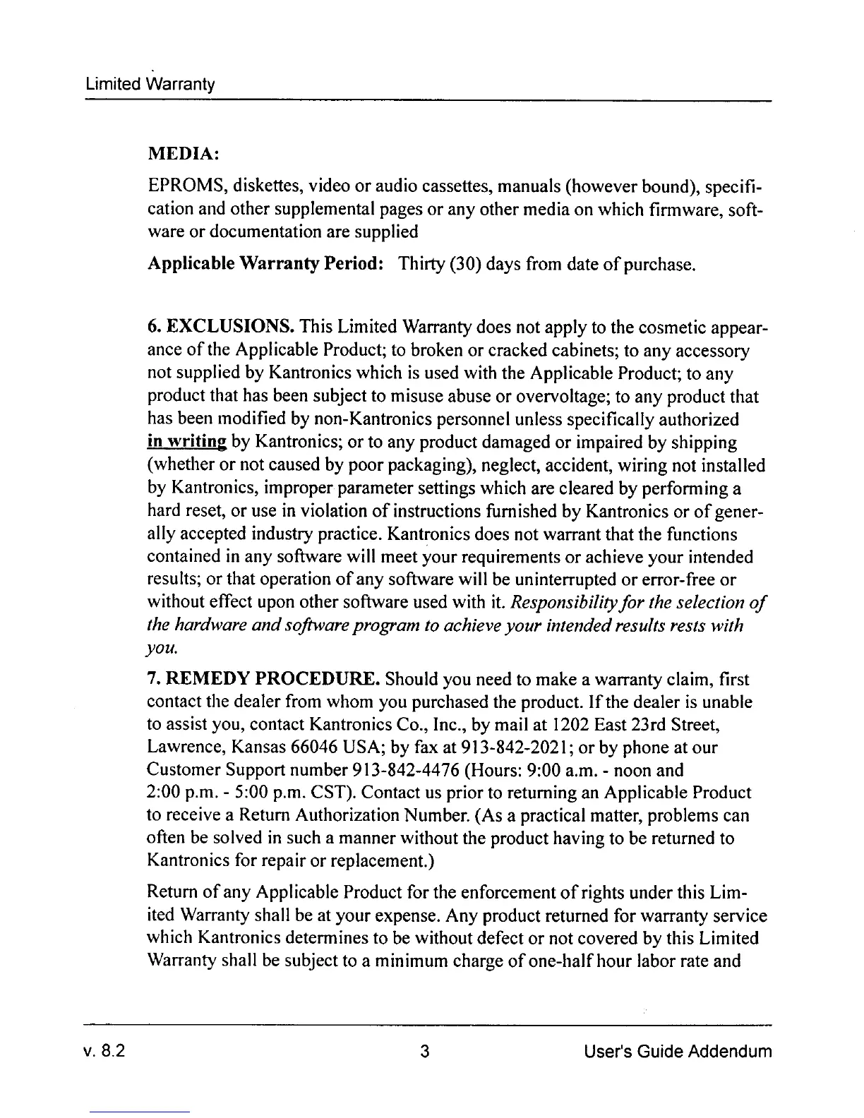 Kantronics KPC-3 - Warranty Exclusions and Procedures