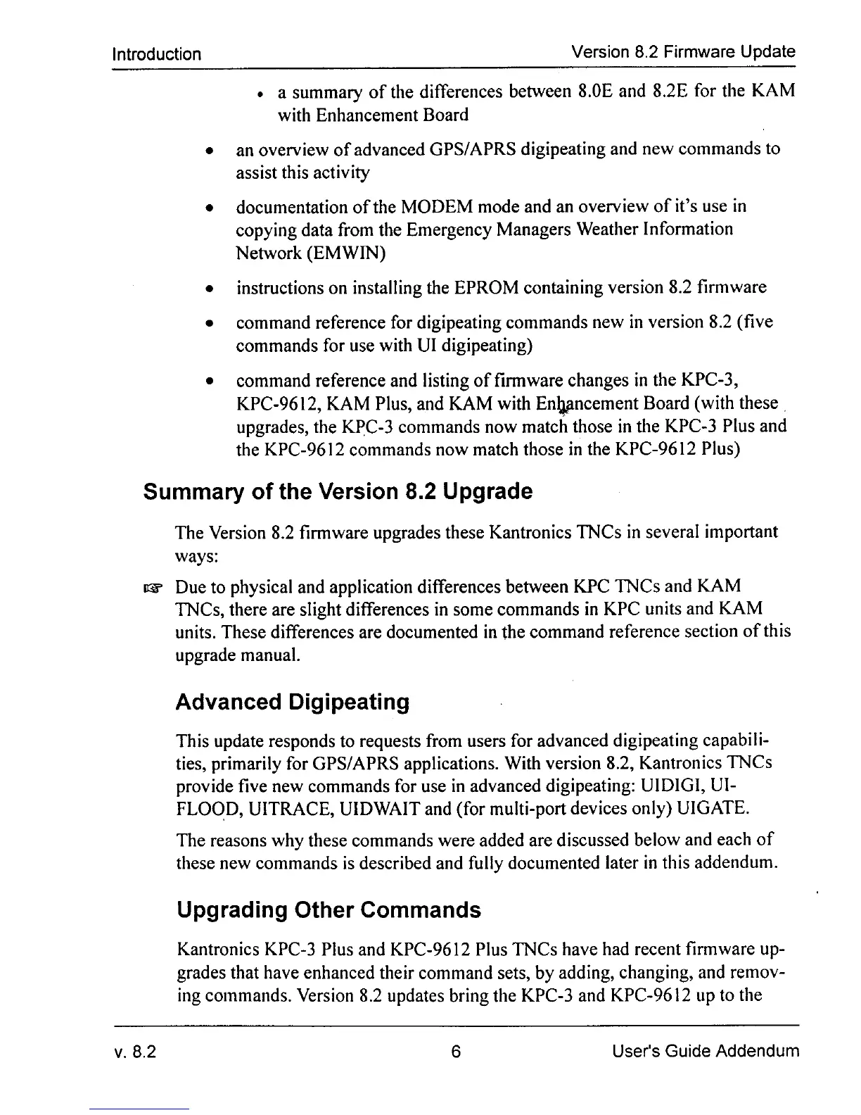 Kantronics KPC-3 - Summary of Version 8.2 Upgrade; Advanced Digipeating Overview; Upgrading Other Commands