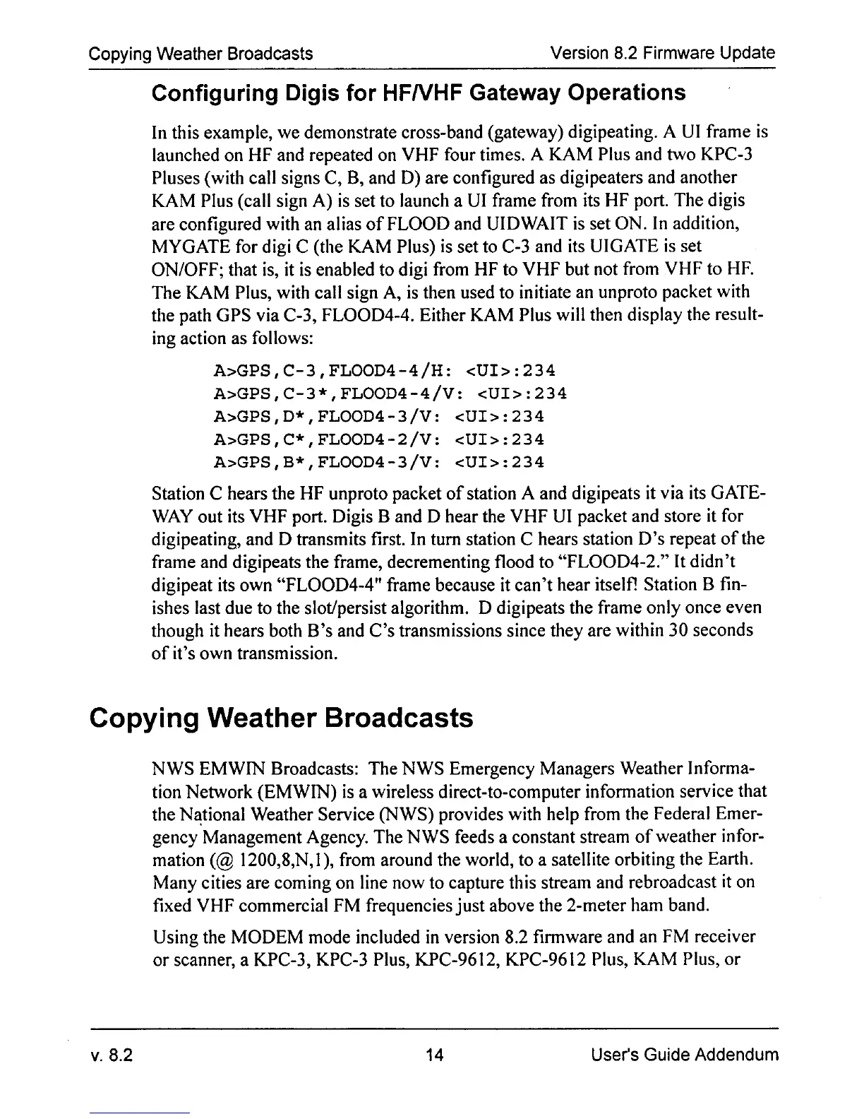 Kantronics KPC-3 - Configuring Digis for HF;VHF Gateway Operations; Copying Weather Broadcasts