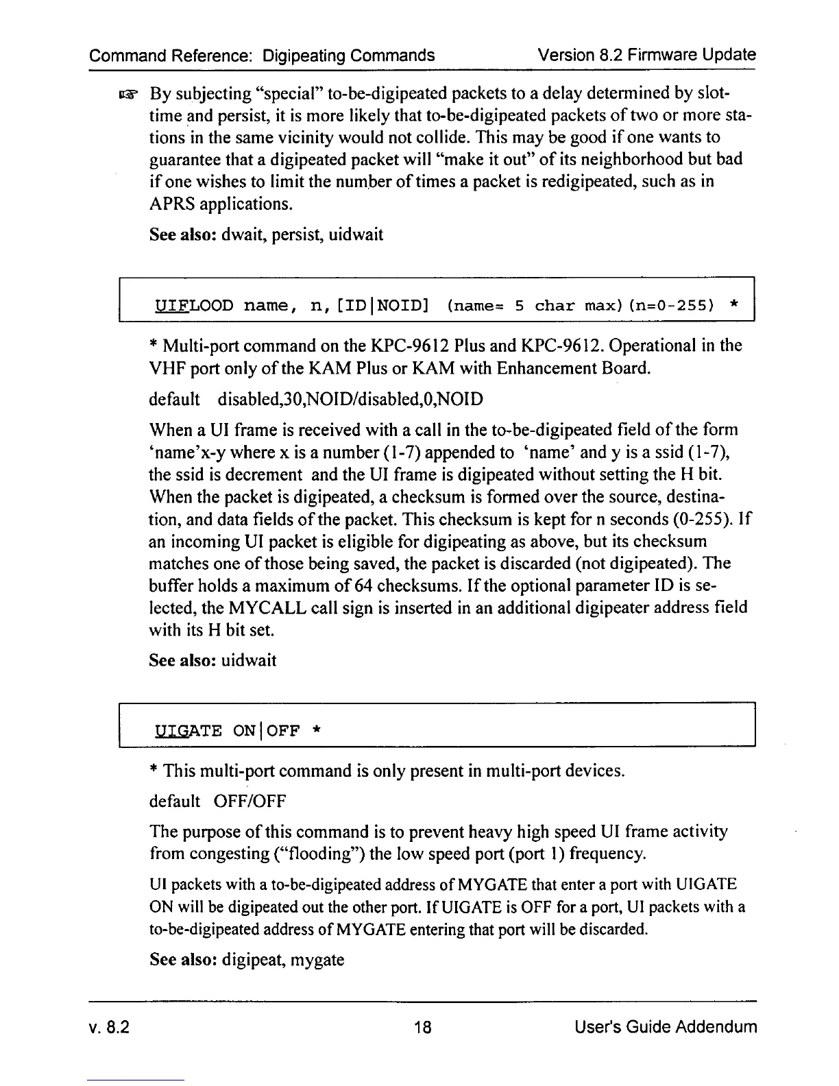 Kantronics KPC-3 - UIFLOOD Command; UIGATE Command