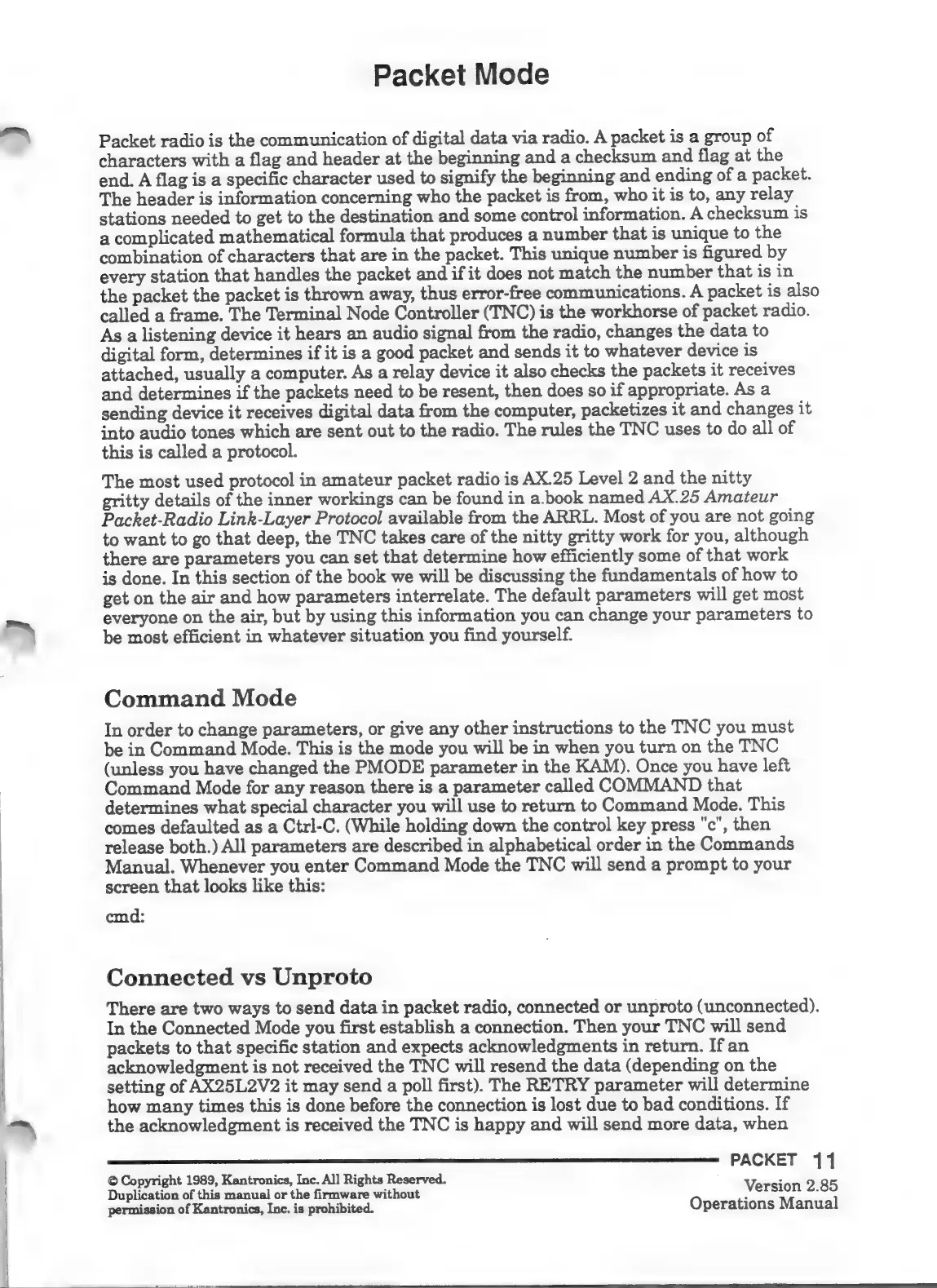 Kantronics KPC-4 - Packet Mode; Command Mode