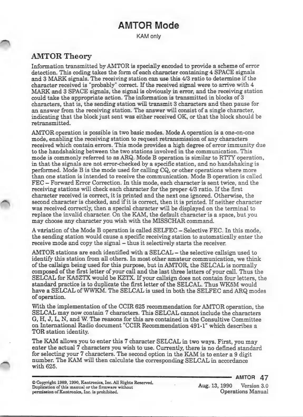 Kantronics KPC-4 - AMTOR Theory; AMTOR Mode