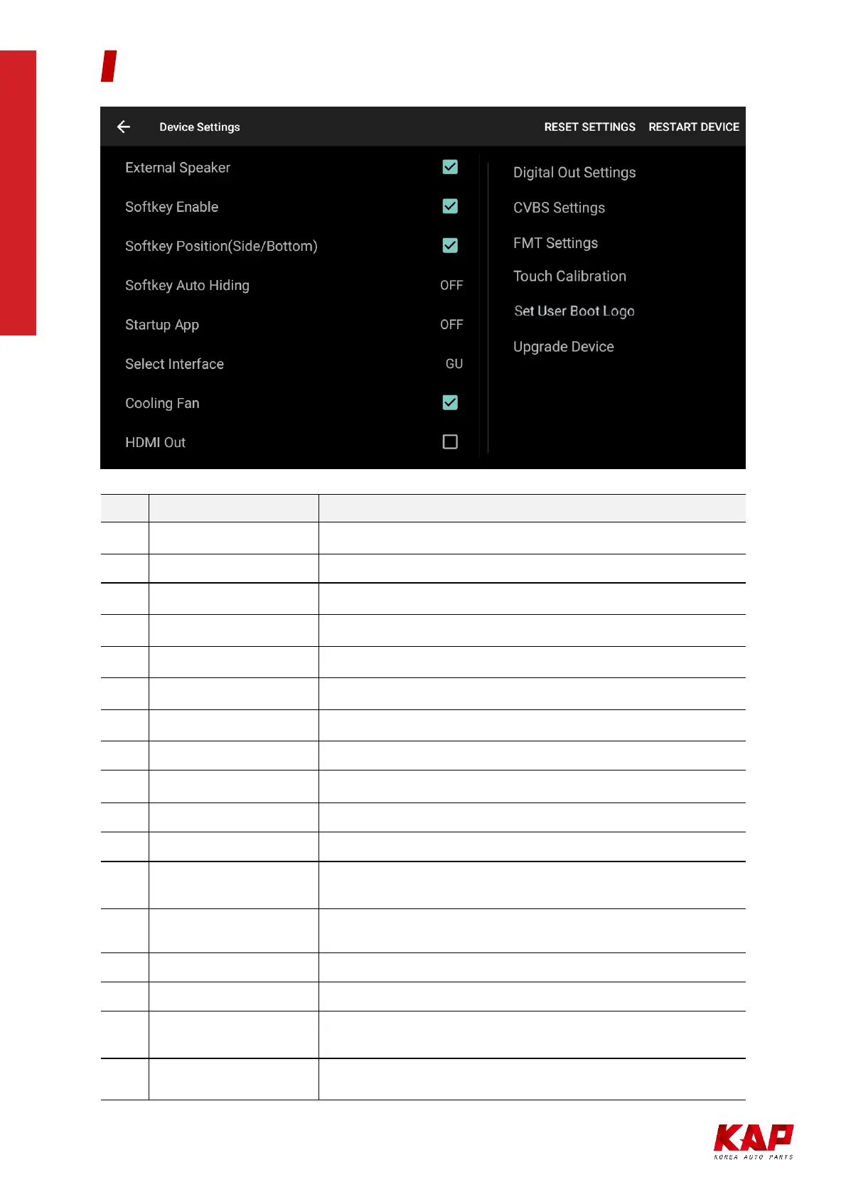 Softkey Enable Use soft key or disable (Floating button when disabled)