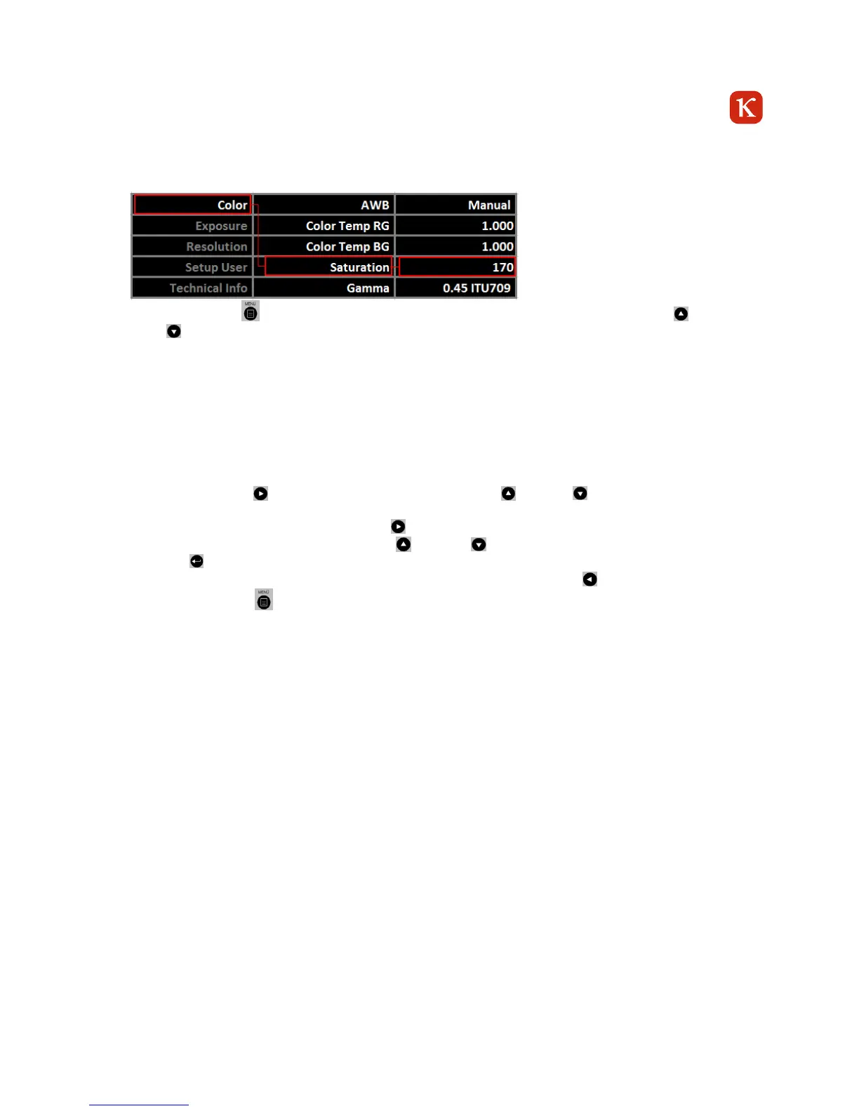 To change a setting, press again the arrow key RIGHT .