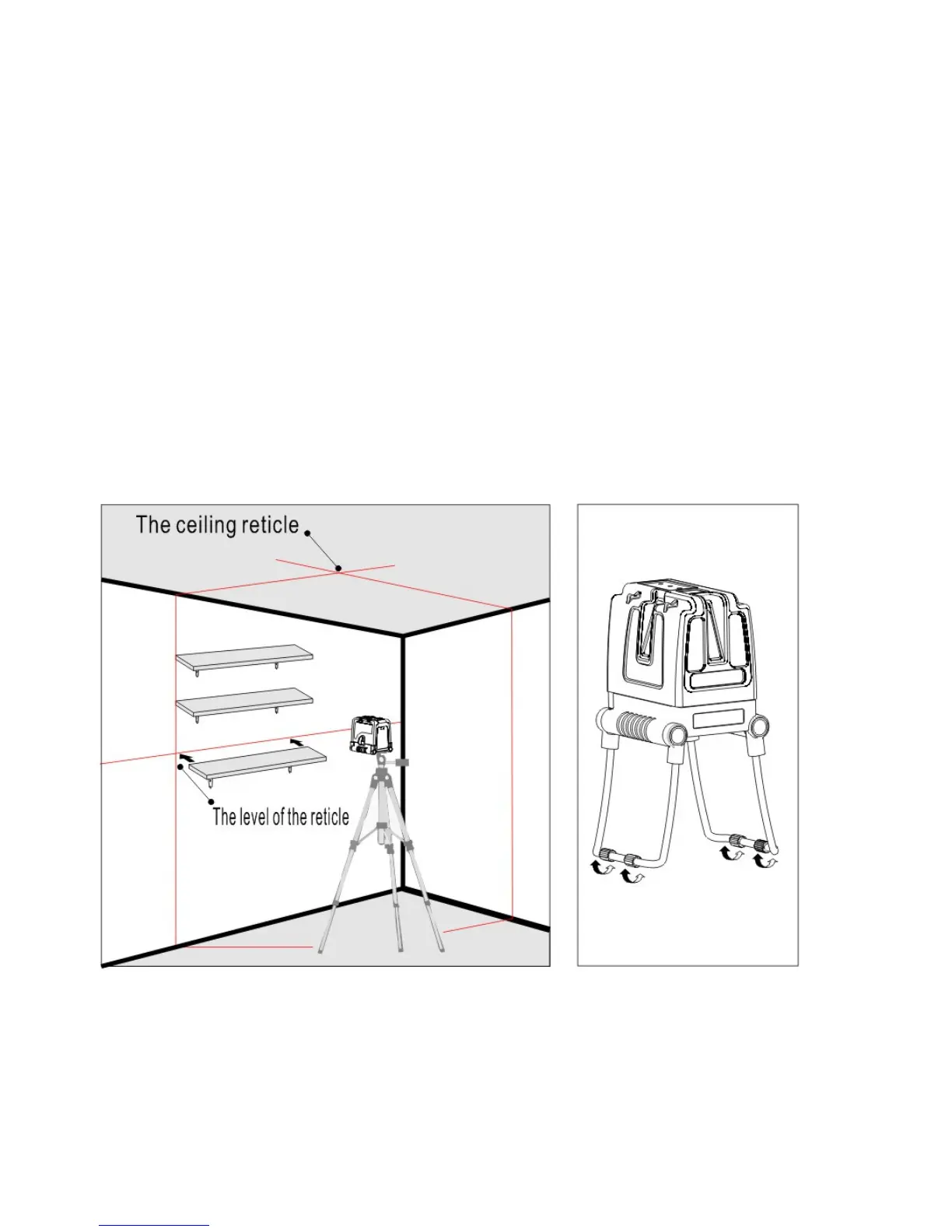 Laser lines forms two intersections - on the wall and on the sealing - as shown on the picture