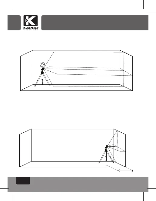 5) Gire el láser 180° hacia la pared B, y marque en la pared