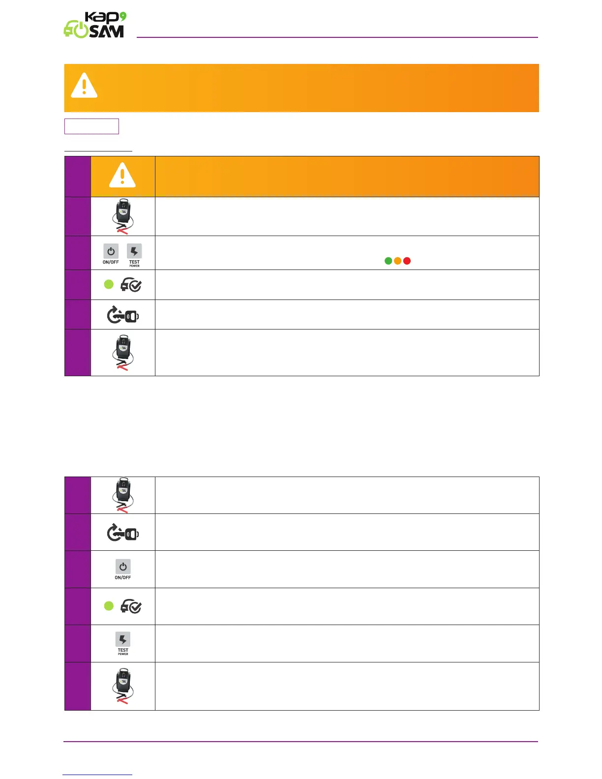 a vehicle with a charged 12V battery. When the Kap’SAM® is used on