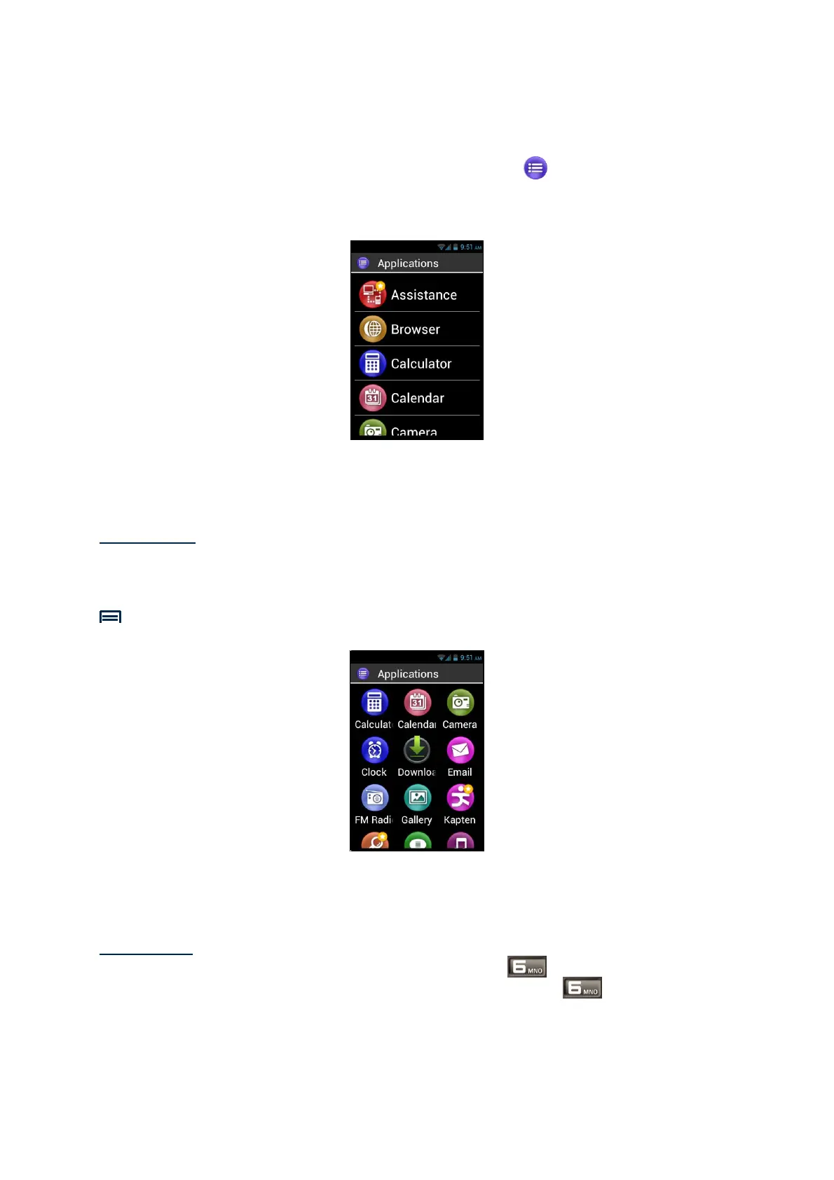 Please note: you can quickly reach an item in the list of applications using the keys 2-