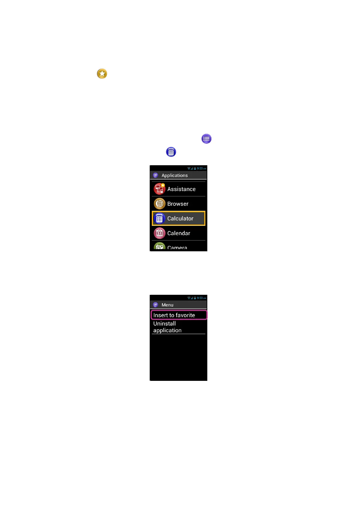 4. From this context menu, click on "Insert to favorite" to store "Calculator" in your