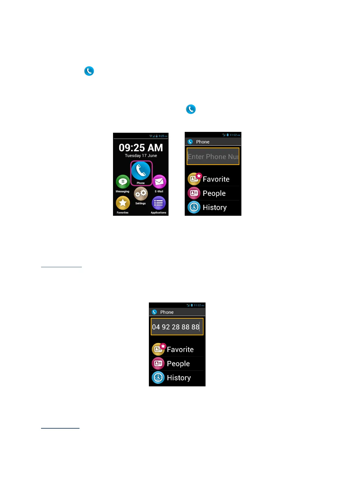 1. From the Home screen, click on "Phone" icon, the application main screen