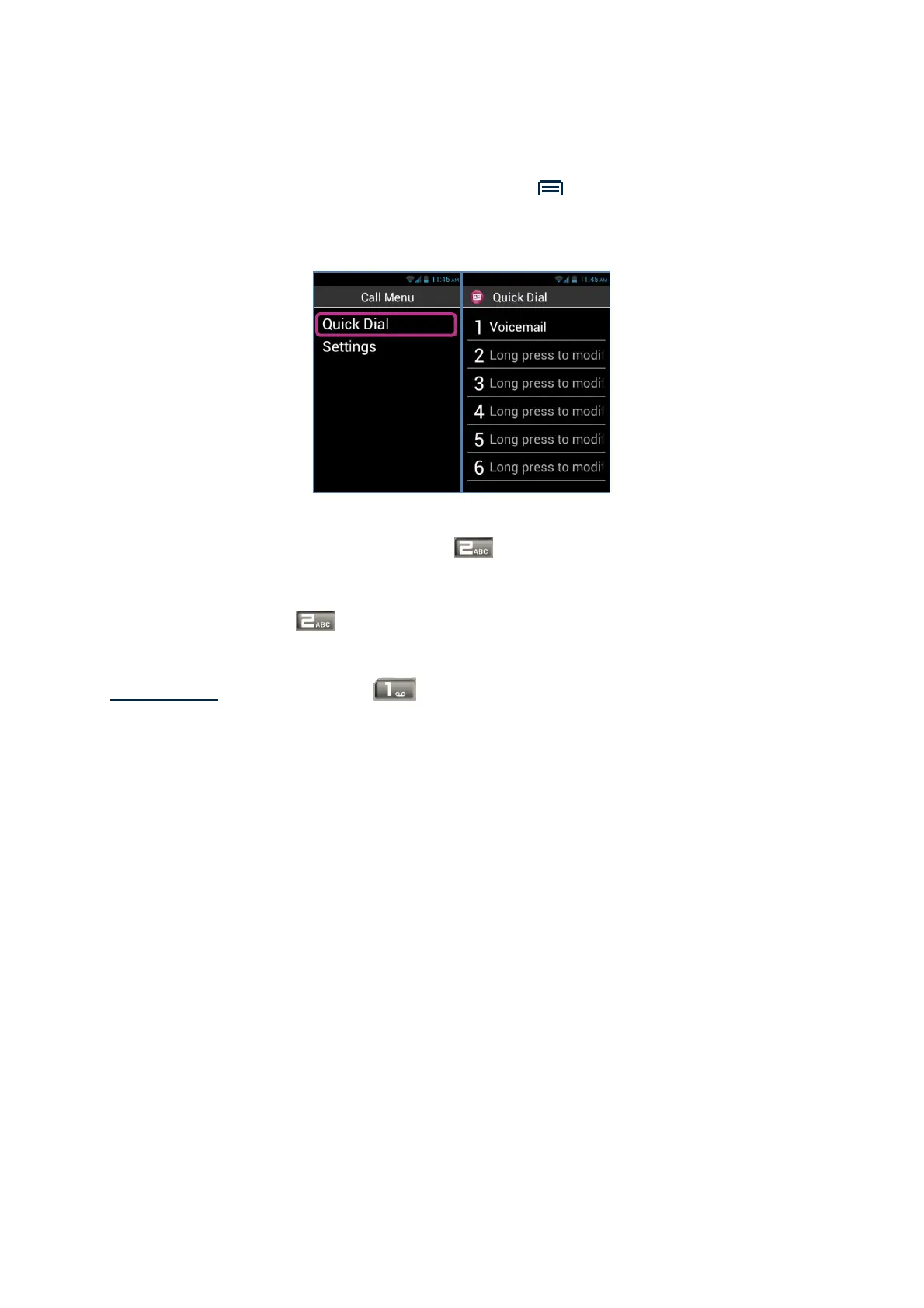 The "Quick Dial" option allows you to set your preferred numbers for direct access