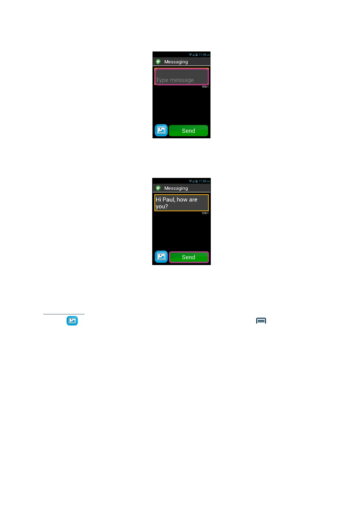 5. Type your message in the text field using the physical keypad, the virtual keypad
