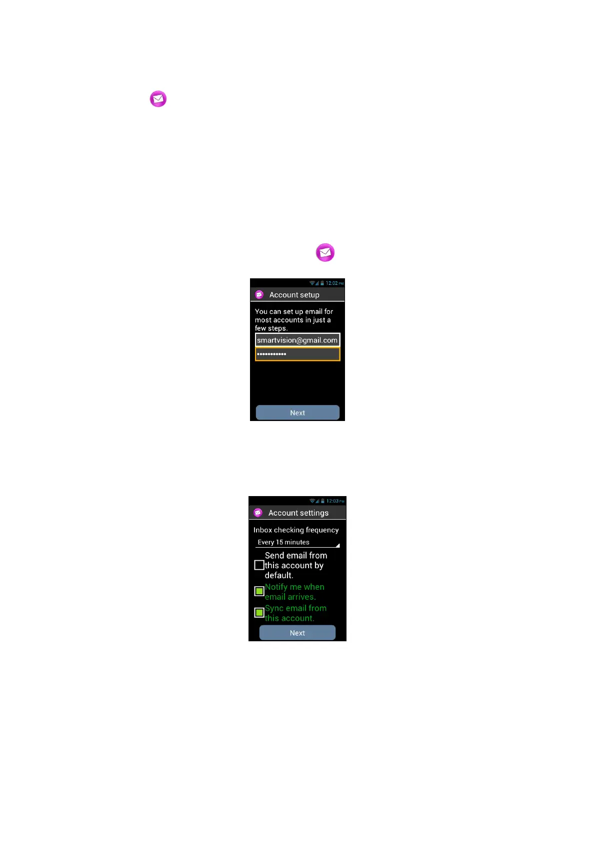 From the home screen, click on "E-Mail" icon. An account set up screen