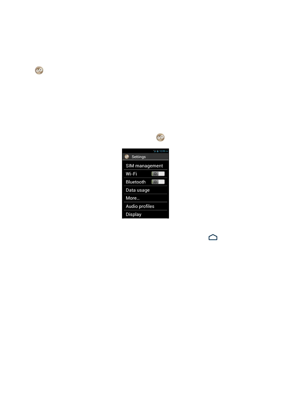 1. From the home screen, click on "Settings" . The list of settings appears.