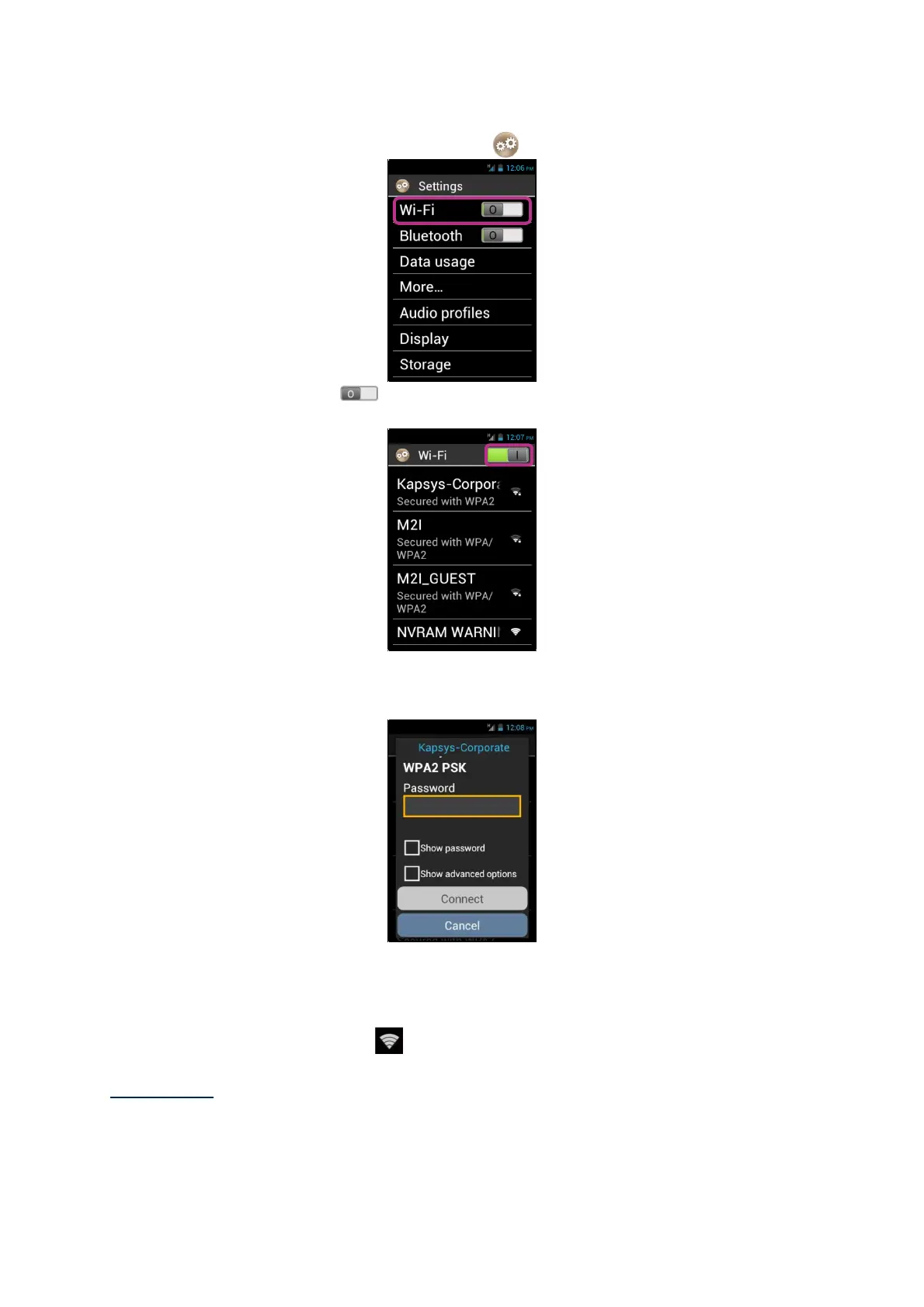 1. From the home screen, click on "Settings" icon, and on "Wi-Fi".