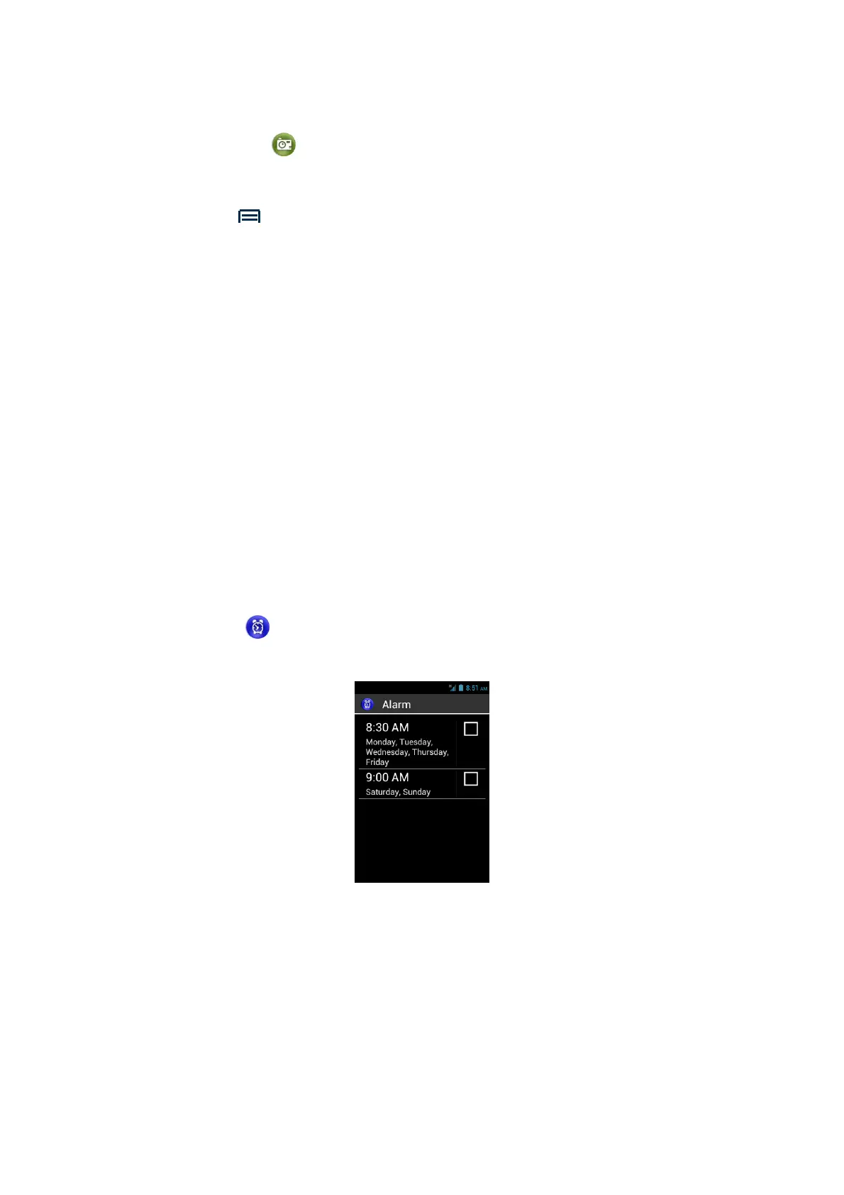From the main screen of the application, press "Menu" then select "Add alarm"