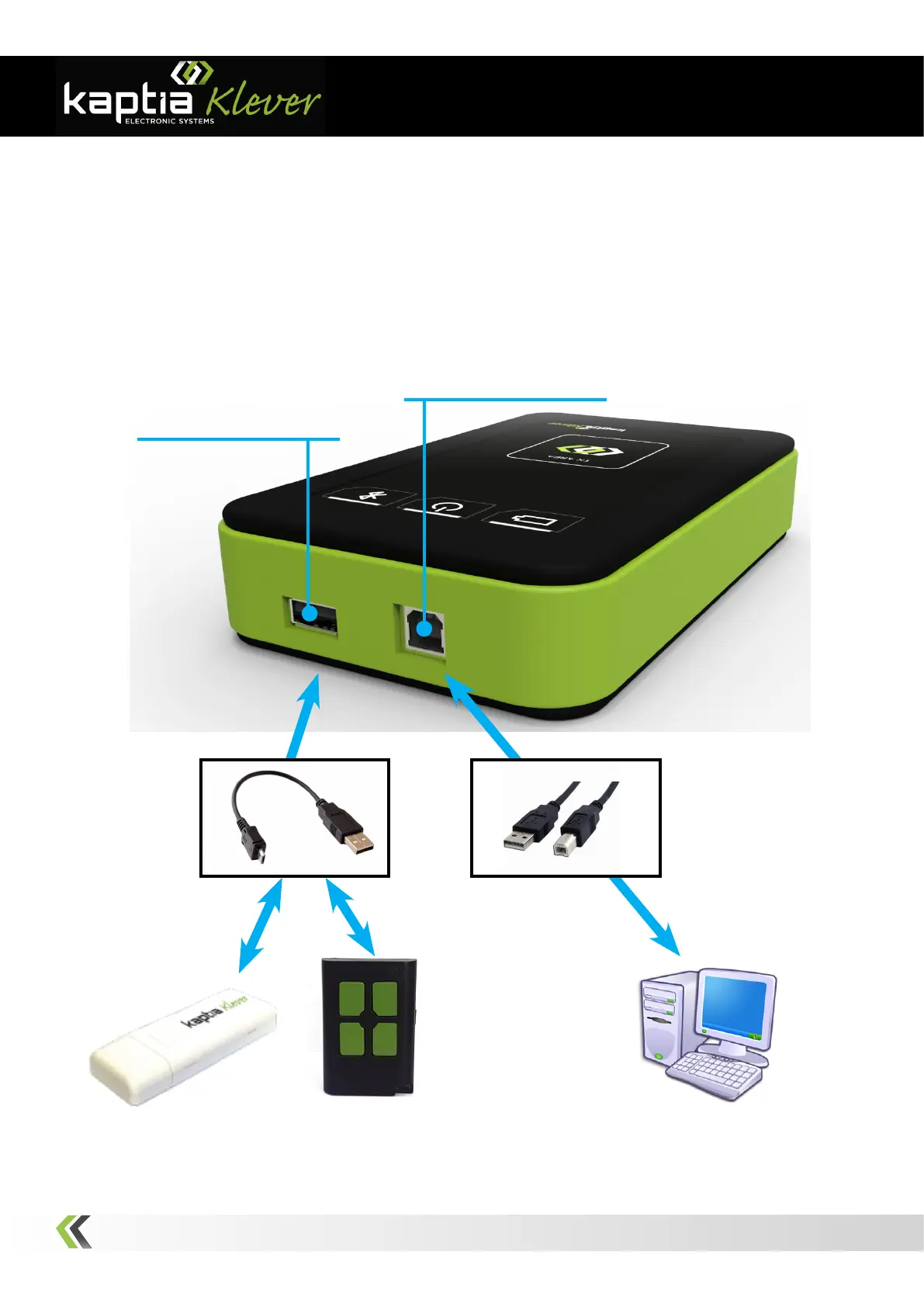 The link to the PC is via a conection to an USB cable through A and the link with periphe-