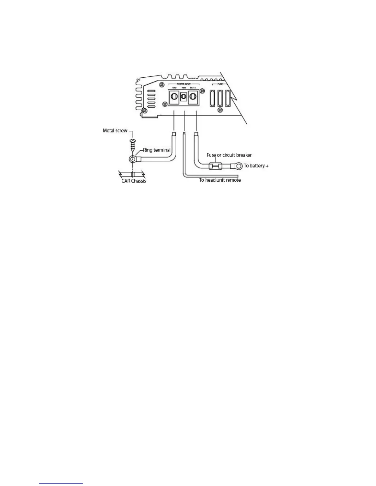 Connect the amplifier’s positive (+) power lead via an external fuse