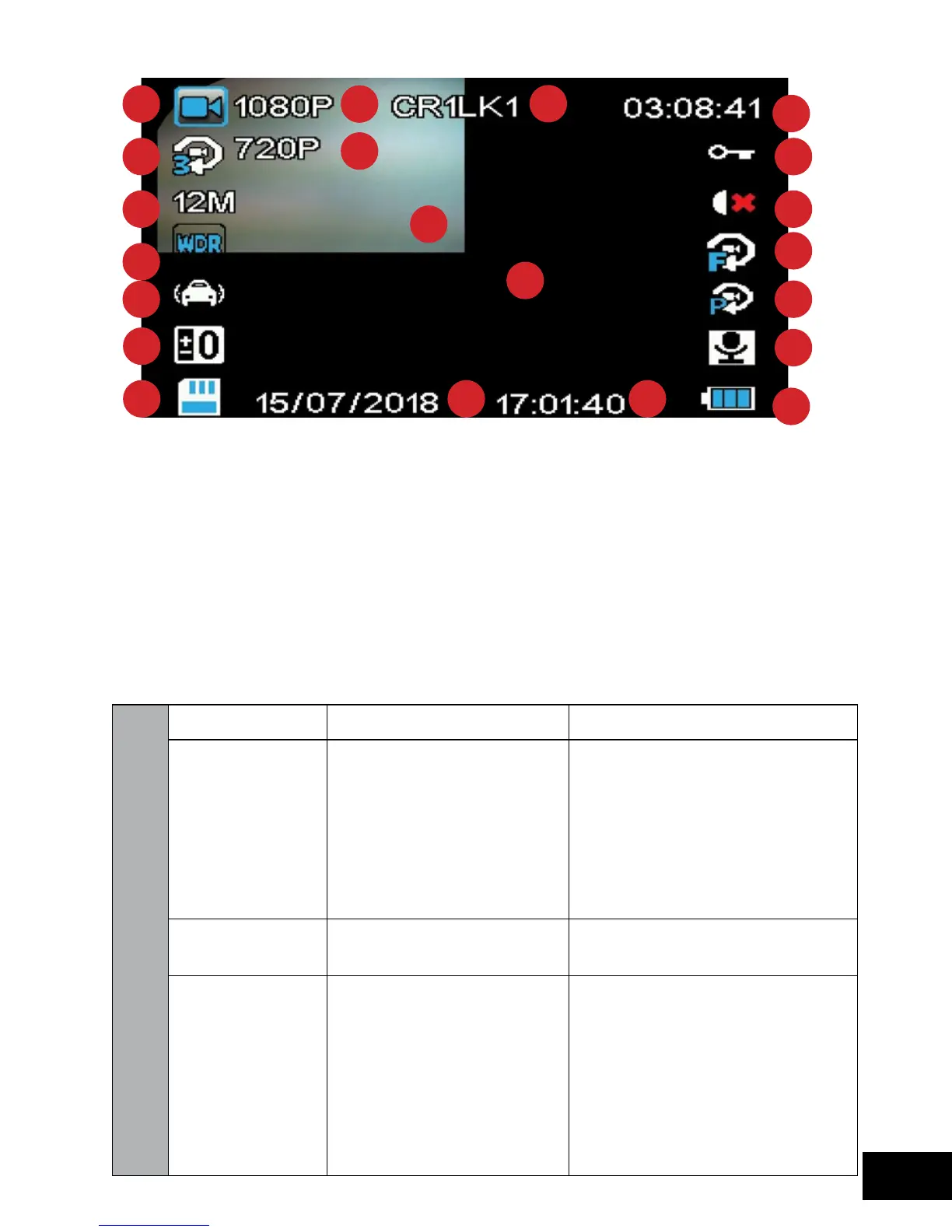 Video Menu - (Unless specified, menu items are for forward facing camera only)