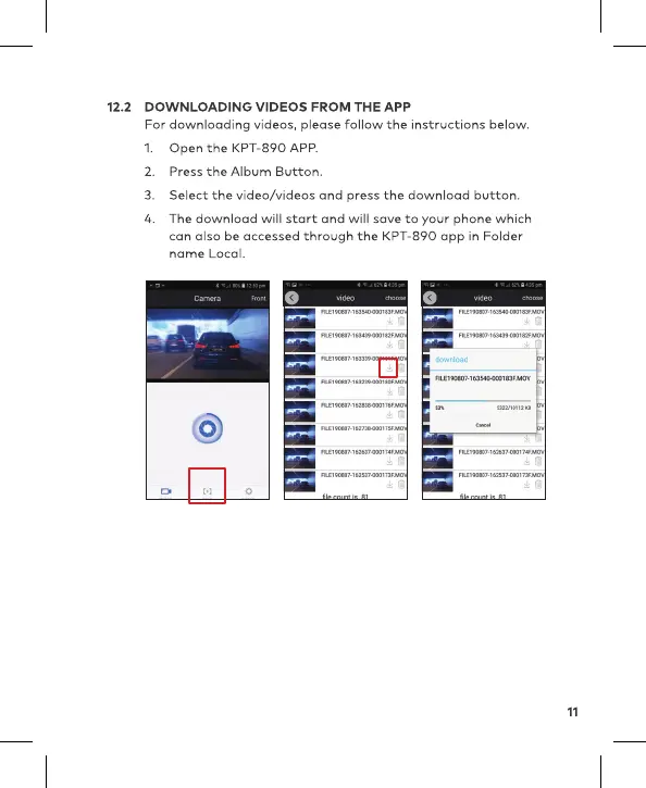 Kapture KPT-890 - DOWNLOADING VIDEOS FROM THE APP