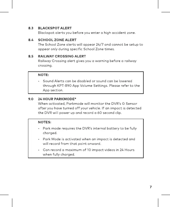 Kapture KPT-890 - BLACKSPOT ALERT; SCHOOL ZONE ALERT; RAILWAY CROSSING ALERT; 24 HOUR PARKMODE