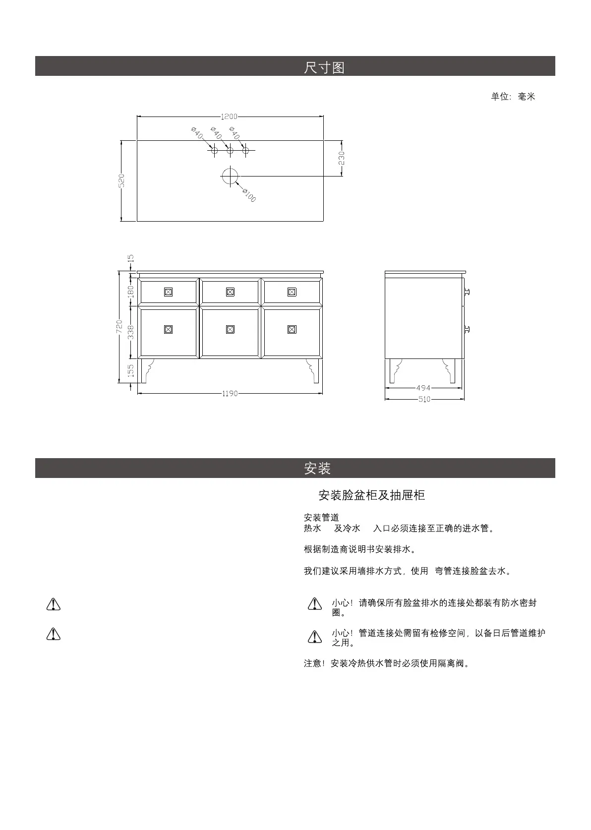 Caution!Provide access to the plumbing connections