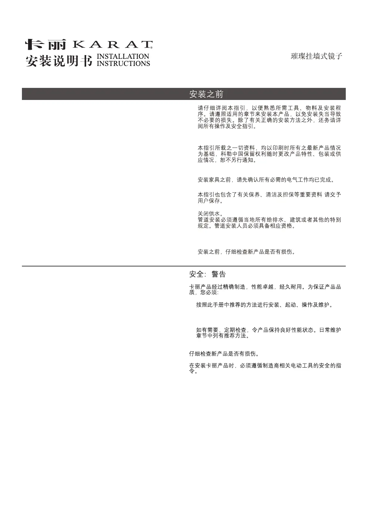 When installing Karat Products, manufacturers guidelines for