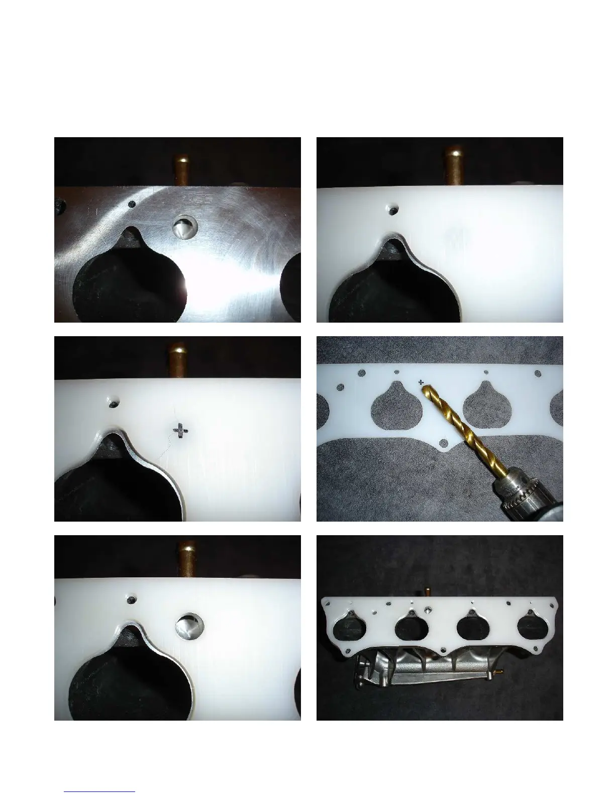atop the manifold. Mark and drill a 15/32” hole into the intake manifold gasket