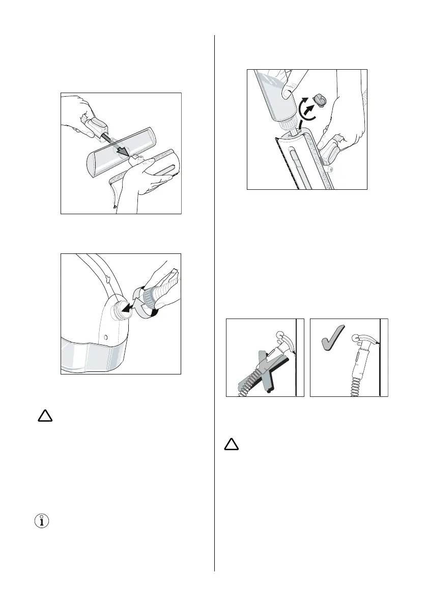 l’impugnatura del tubo flessibile sulla testa di