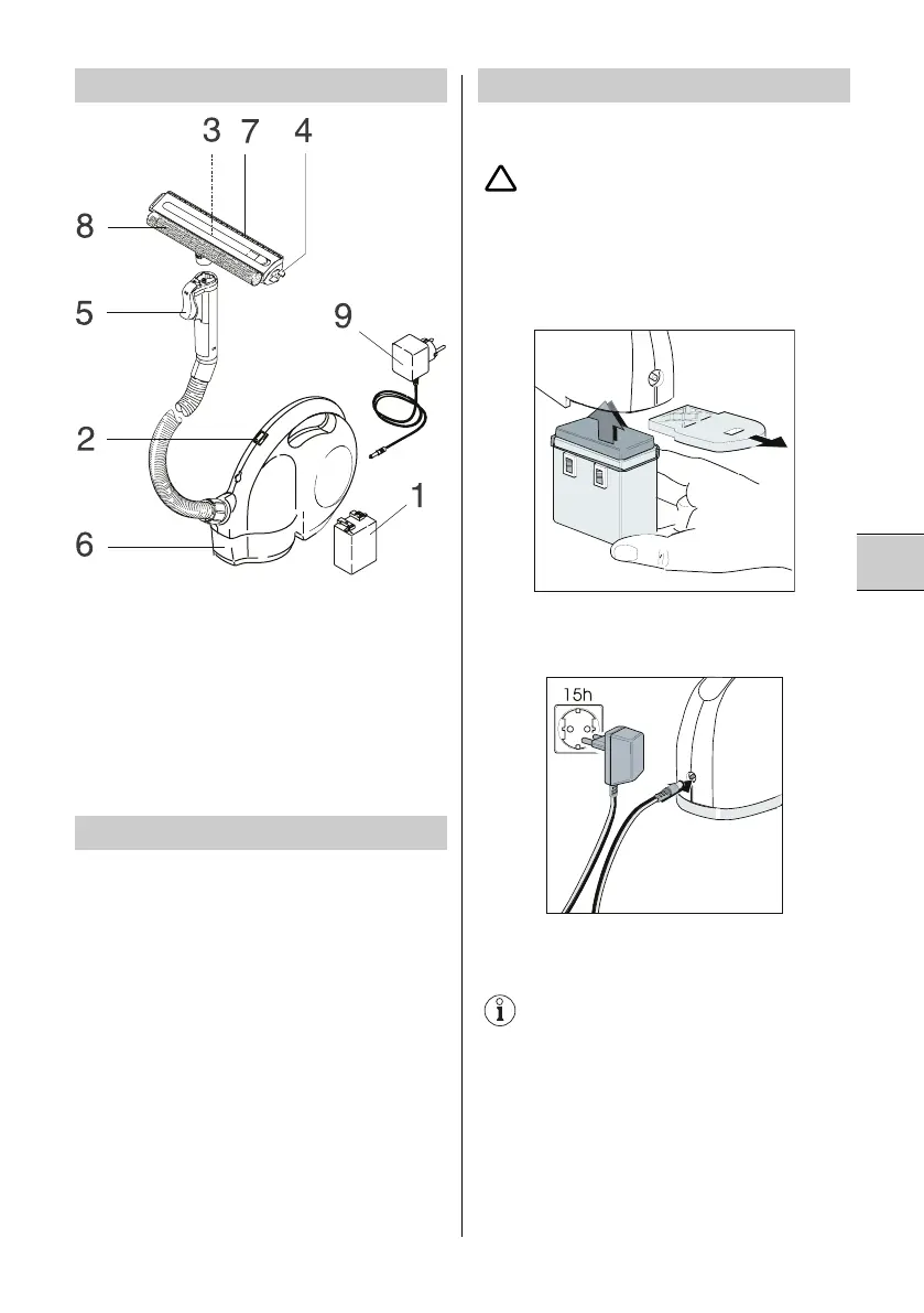 Ladetid ved tom akkumulator ca. 15 timer