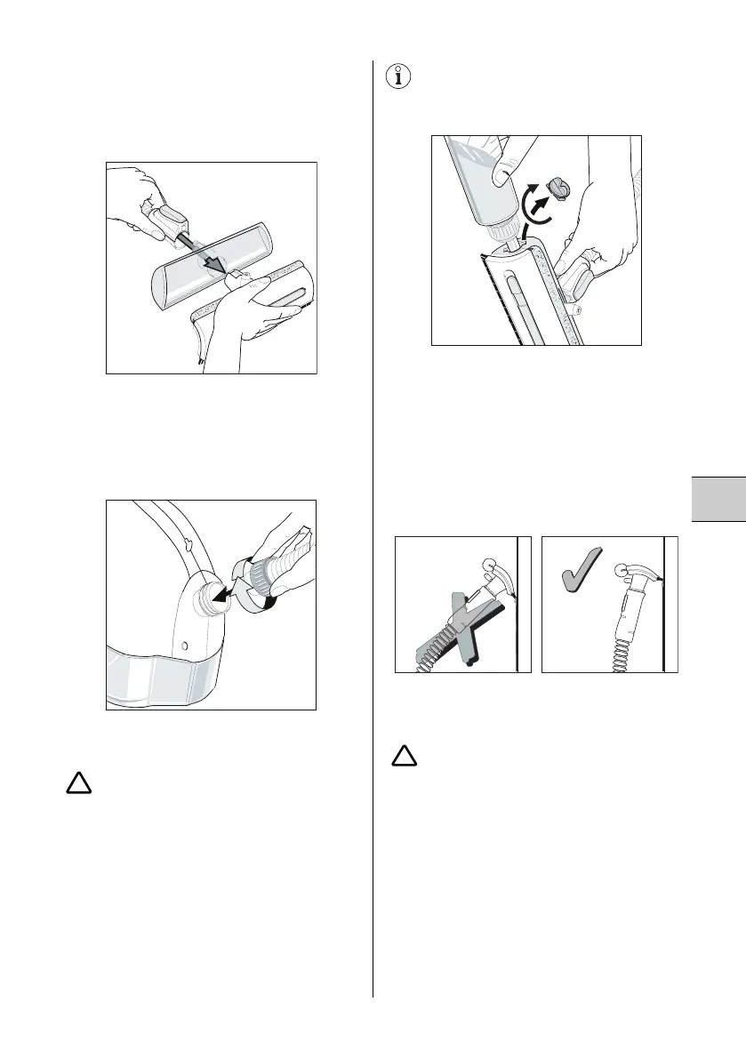 slangen i rengjøringsmunnstykket. Pass på