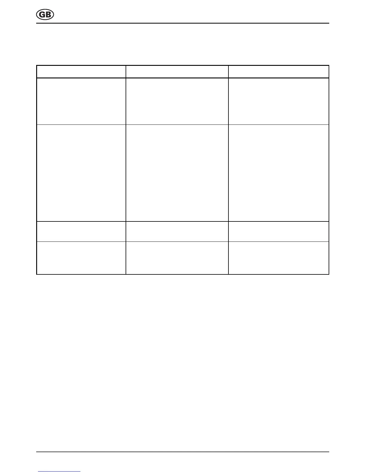 Fault Possible cause Remedy