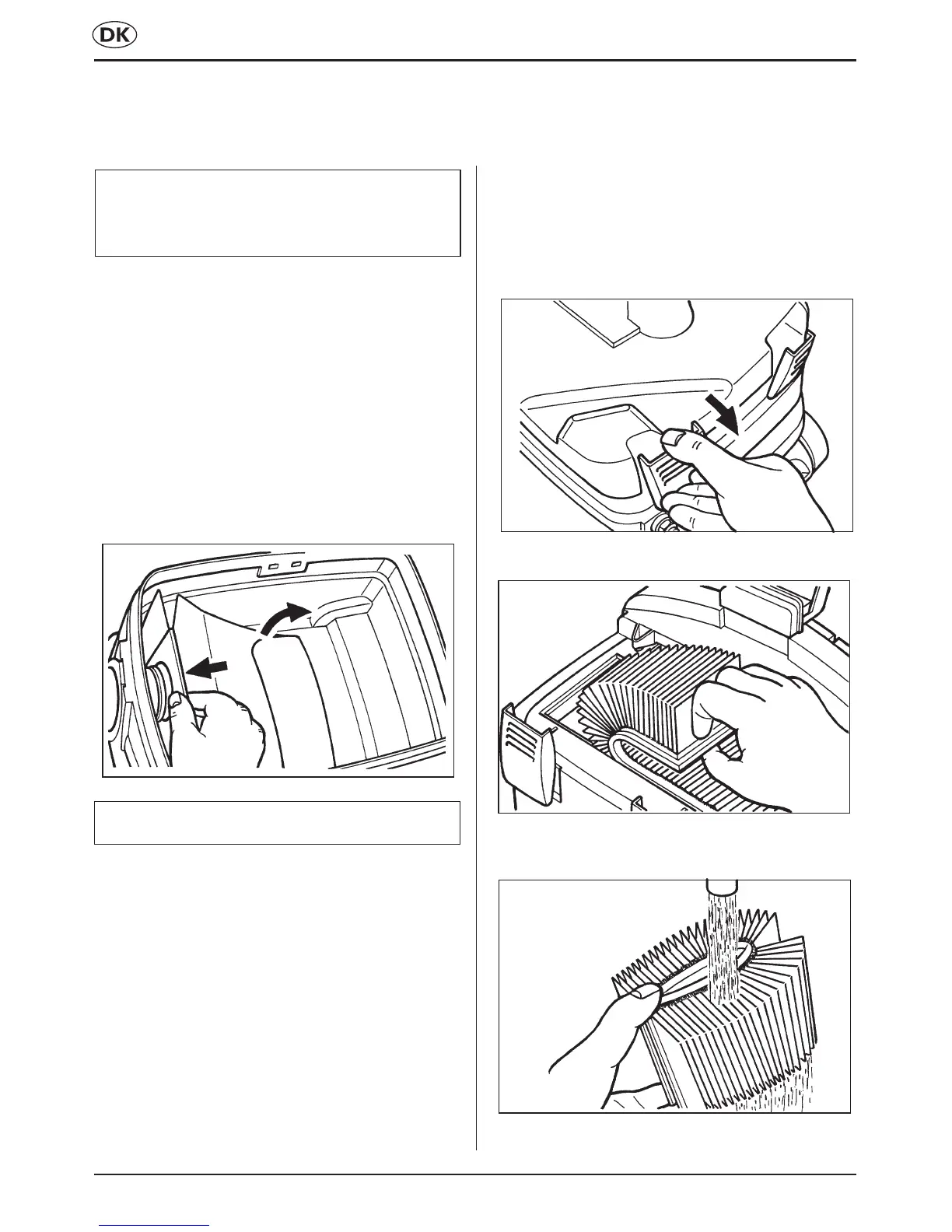 • Hvis snavset ikke vil løsnes, vaskes filteret un-
