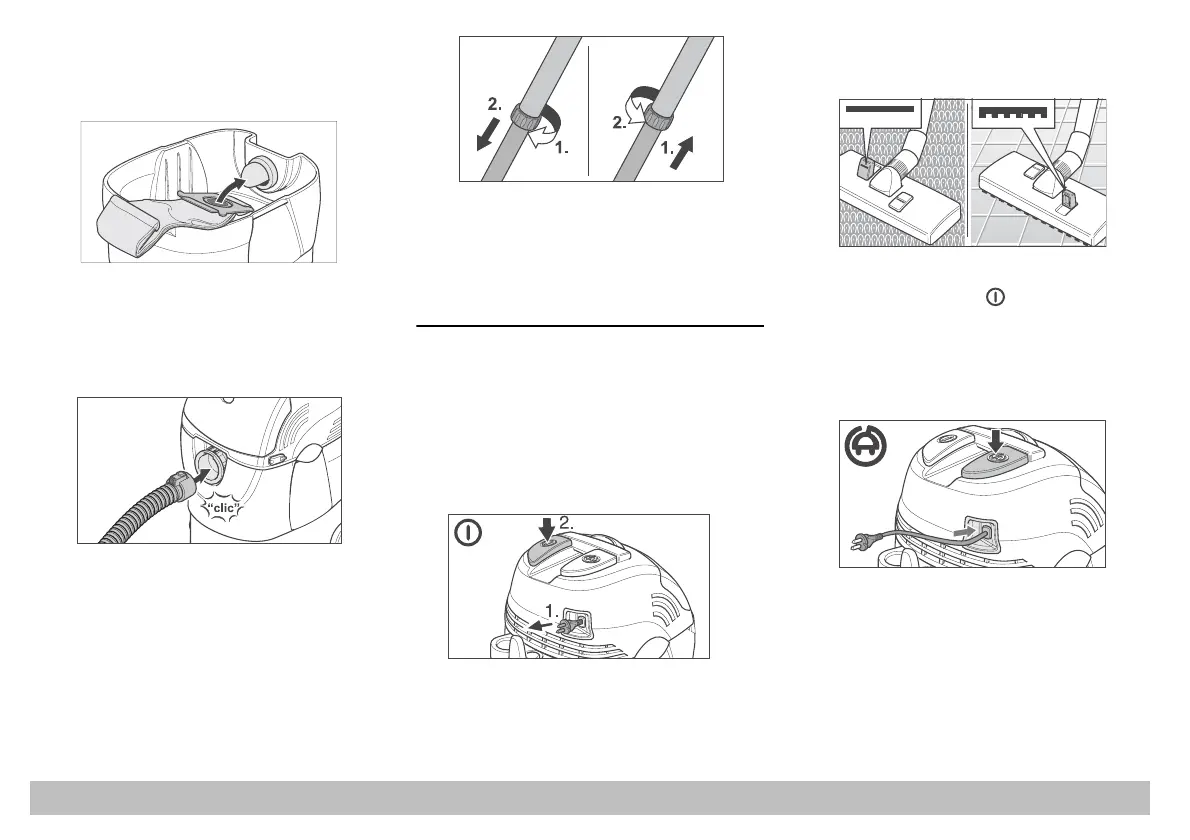 the unit. The suction hose “clicks” into position.
