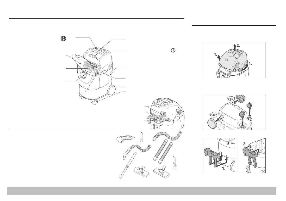 vodiace valčeky (6) a držiak príslušenstva (7). Pri poškodení prepravou informujte Vášho obchodníka.