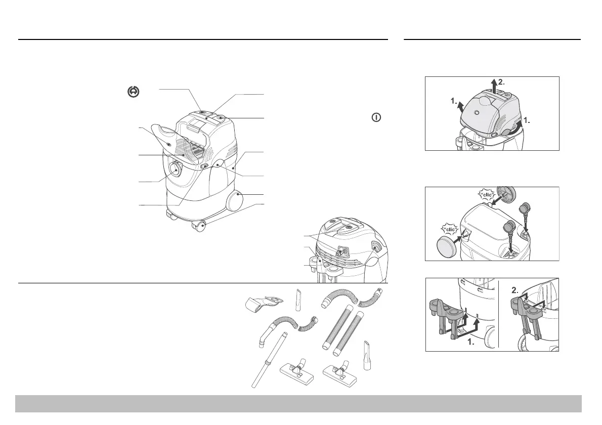 Prilikom raspakivanja proverite kompletnost sadržaja paketa, točkovi (5), valjci za upravljanje (6) i držač pribora