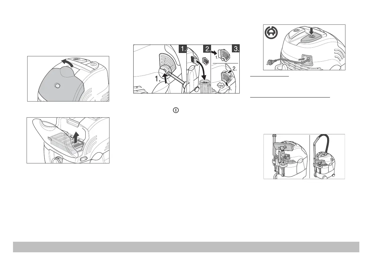Sluk maskinen og åbn låget til filterrummet.