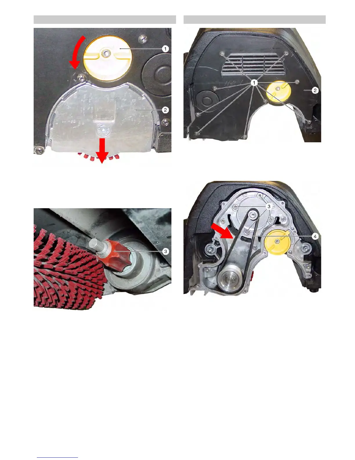 Î Unscrew the fastening screws of the drive belt cover and re-