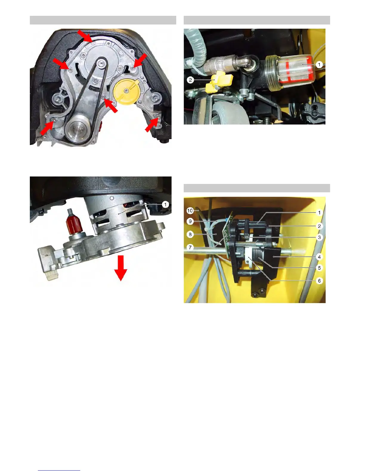 Î Unscrew the fastening screws (arrows) of the brush drive.