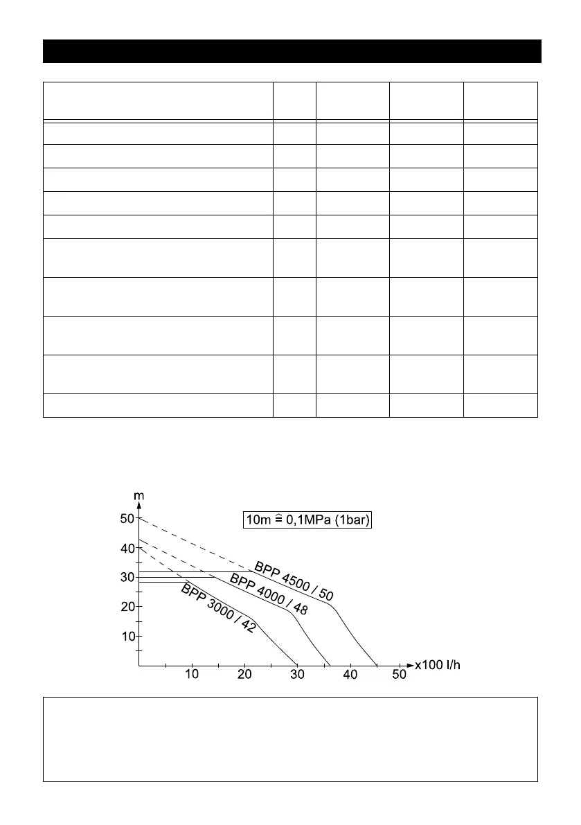 La pressione di esercizio e la portata dipendono dall'altezza di aspirazione e dalla