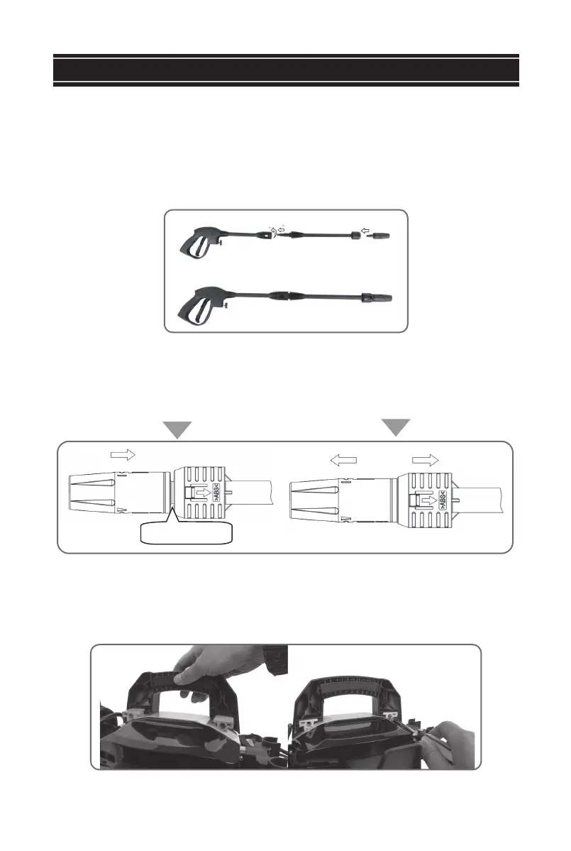 1. Conecte la pistola, la lanza de conexión rápida y la boquilla ajustable