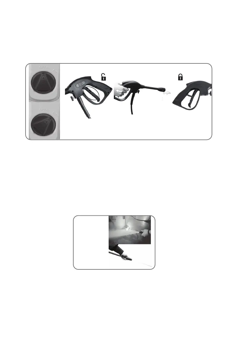 Pulse el gatillo y saldrá el chorro de agua a alta presión. Podrá ajustar la boquilla