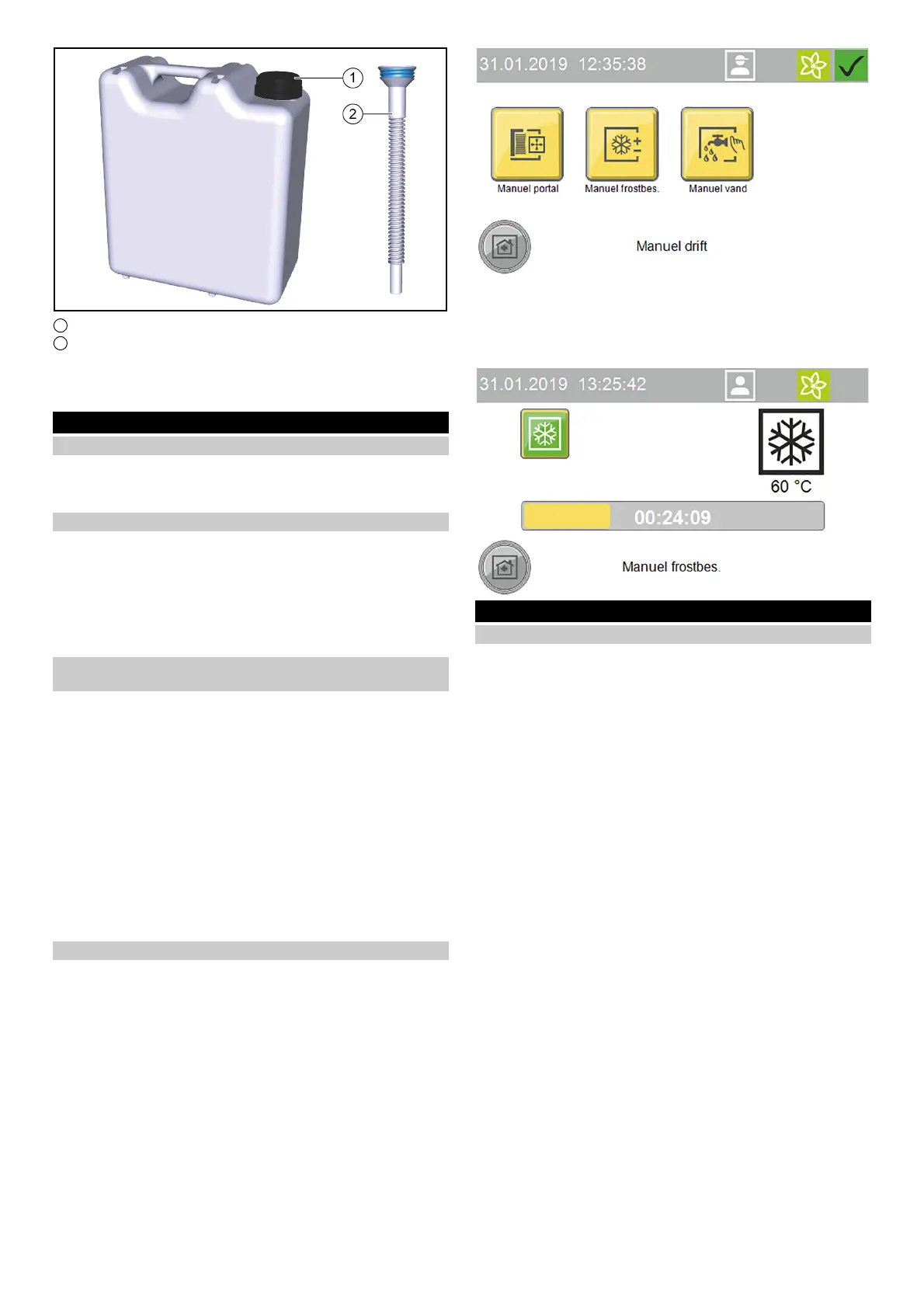 2. Tryk på tasten "Manuel frostbeskyttelse" for at starte frostbe-