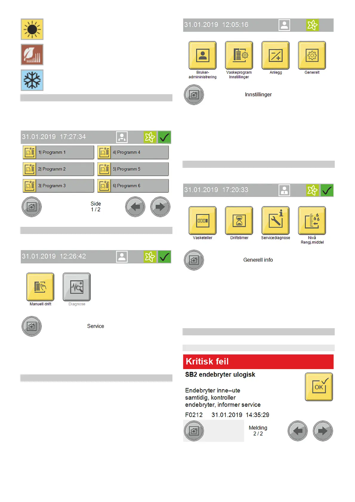 I anleggsdriften kan følgende push-meldinger vises på displayet.