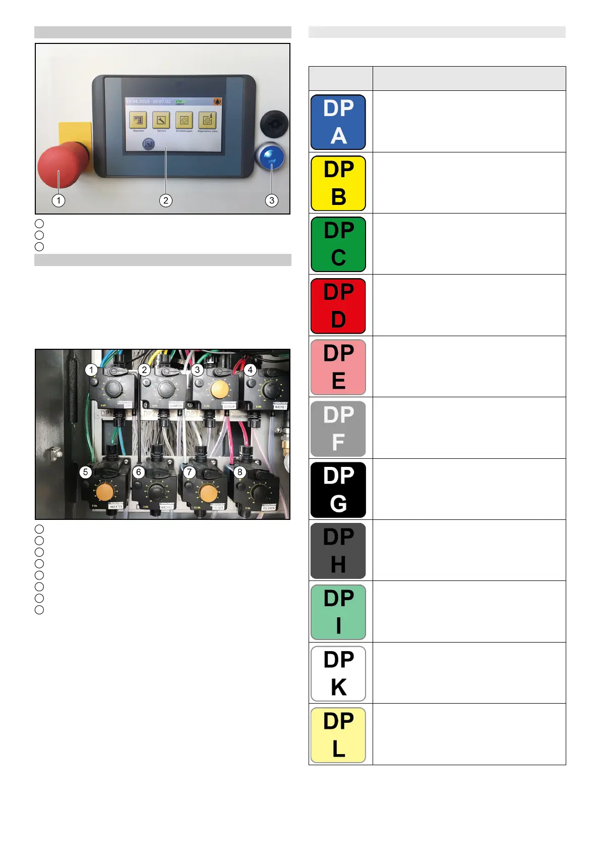 För doseringspumparna 5–8 kan sju olika rengörings- och bil-