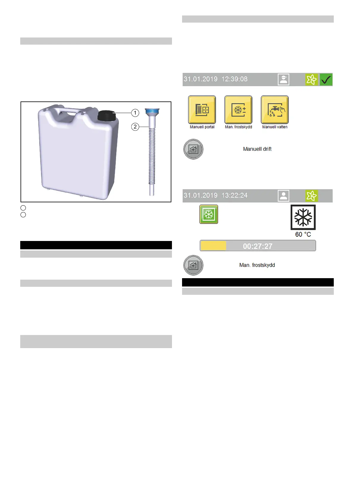 2. Tryck på knappen ”Manuellt frostskydd” för att starta frostskyd-